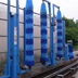 端面洗刷由龍門支架、滑槽擺桿、角變量?jī)x、阻力裝置、端刷輥筒、輥筒馬達(dá)、拖放裝置、拖放馬達(dá)和噴管噴嘴組成。